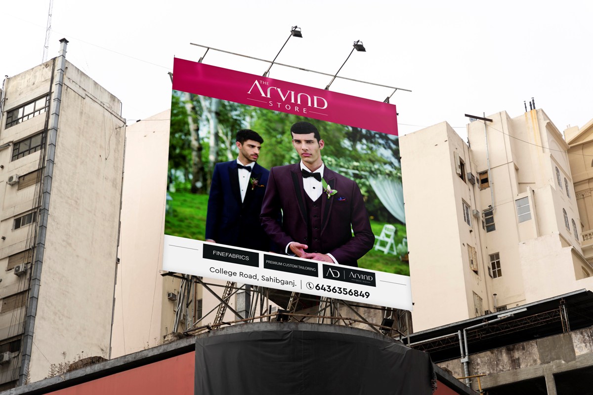 Using large print advertisements on high platforms (billboards, Hoarding & Unipoles) to market a brand or product.
